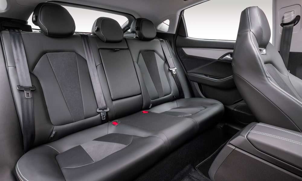 | Кожаная отделка сидений черного цвета с декоративной прострочкой, перфорацией и декоративными вставками |